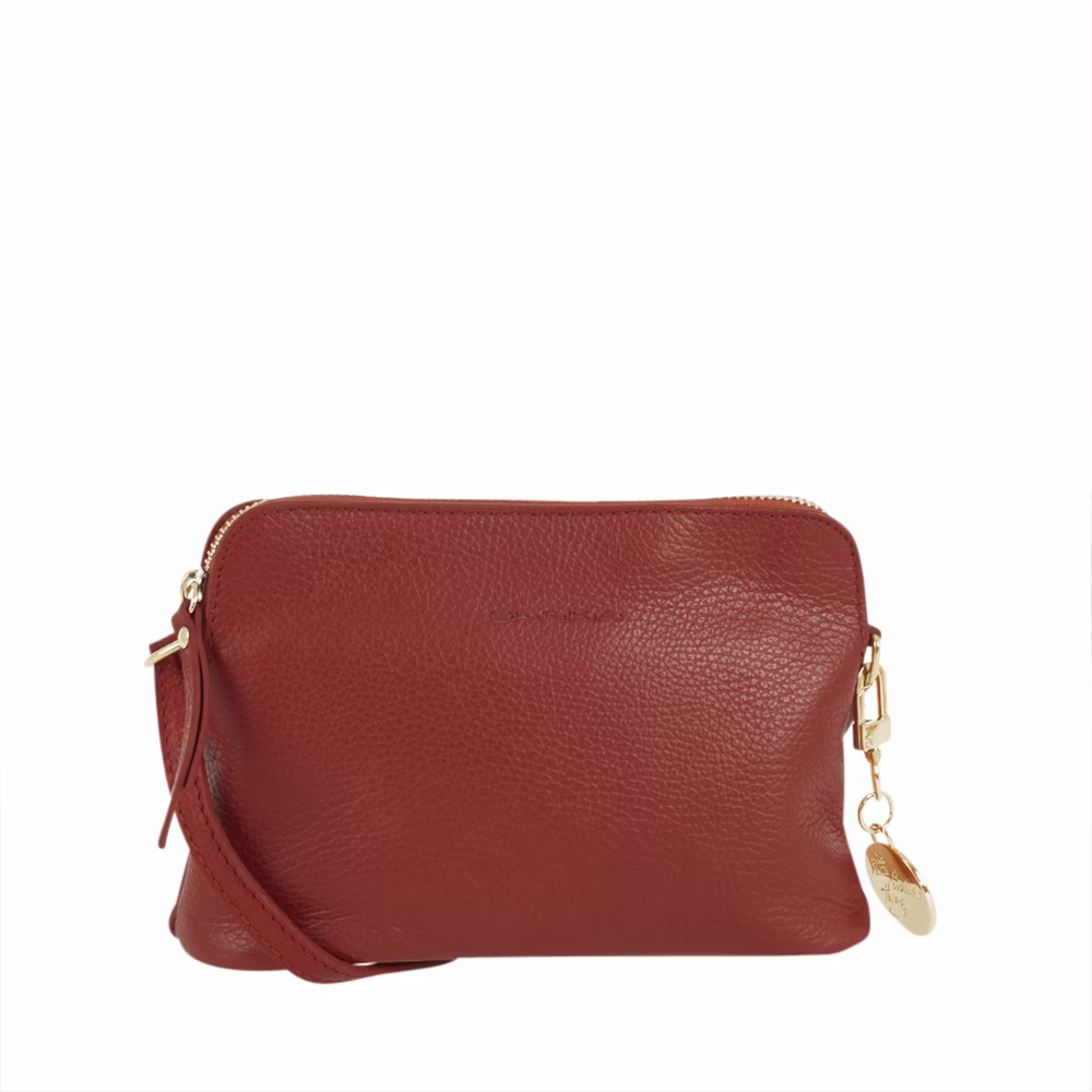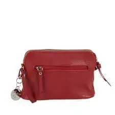 Smidig axelremsväska i skinn. Ett innerfack med dragkedja samt ett ytterfack med dragkedja.