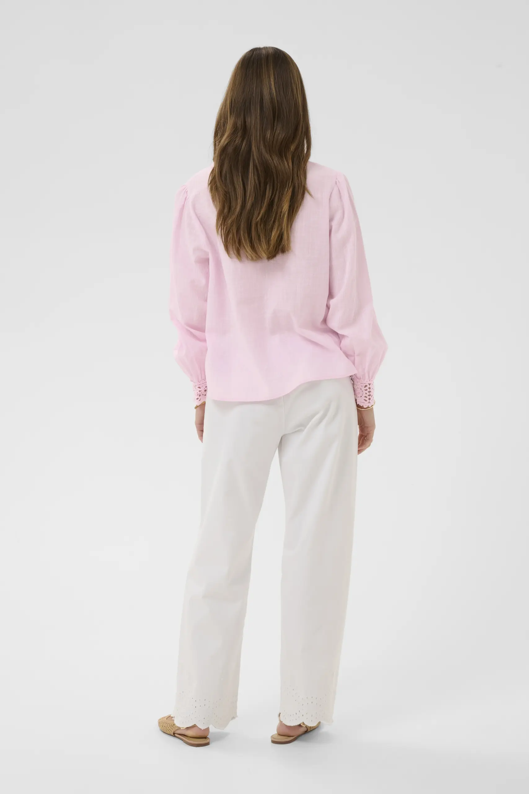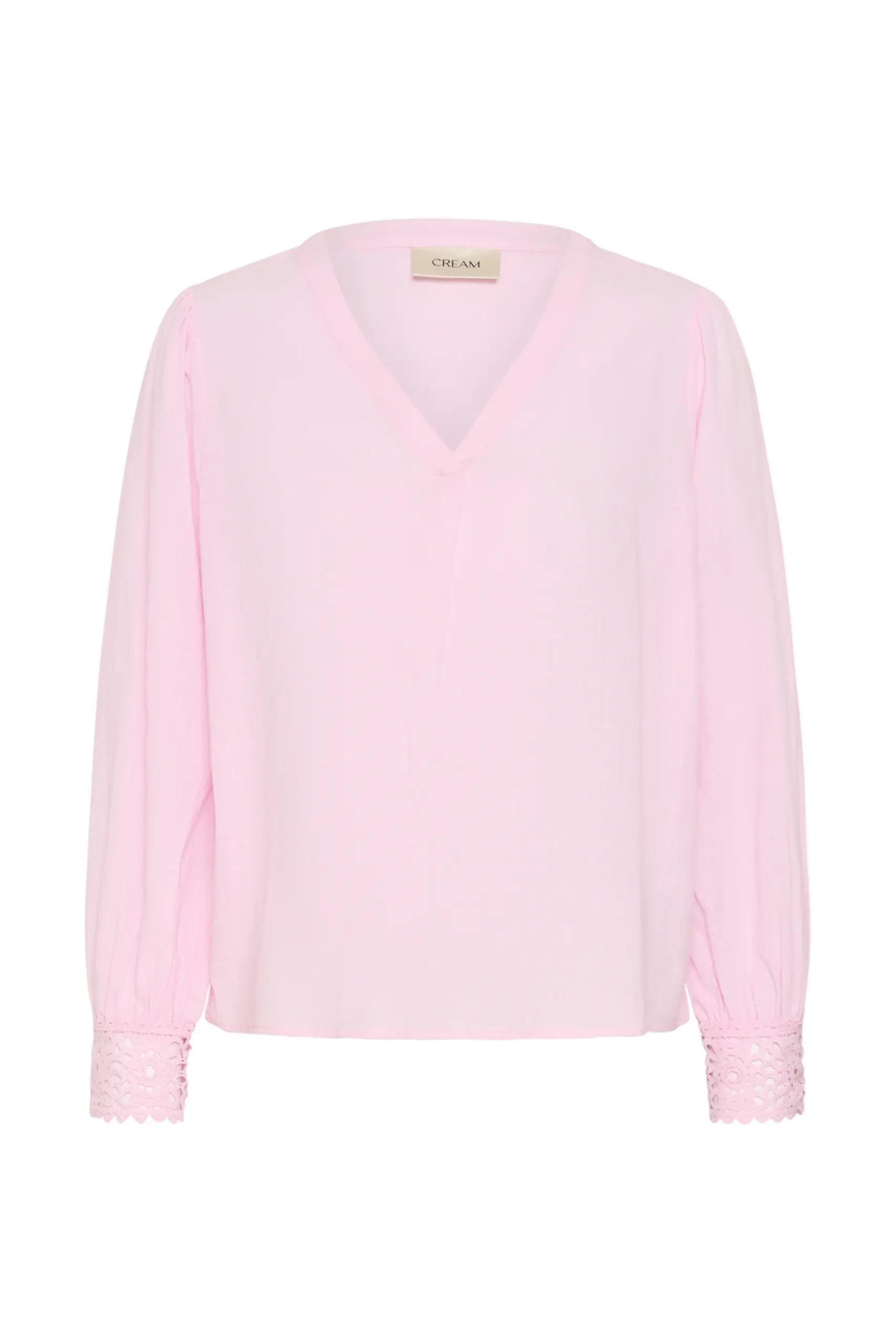 Fin blus i 100% bomull från Cream. Blusen är v-ringad och har lång ärm med dekorativt ärmslut.