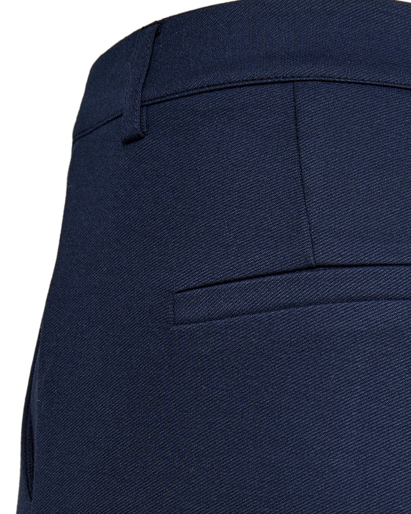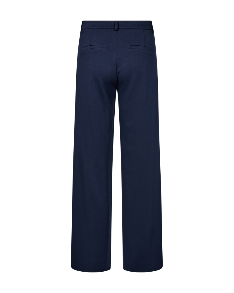 Mjuk marinblå byxa med avslappnad passform från FREE/QUENT. Byxan stängs med knapp och dragkedja, har sidfickor samt fuskfickor bak.