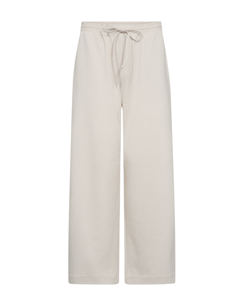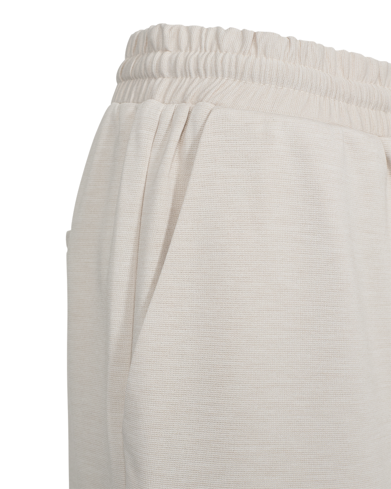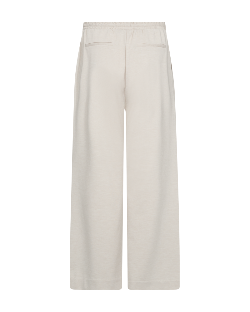 Mjuk ljusbeige melerad byxa med avslappnad passform från FREE/QUENT. Byxan har resår i midjan med dragsko och sidfickor samt bakficka som detalj.