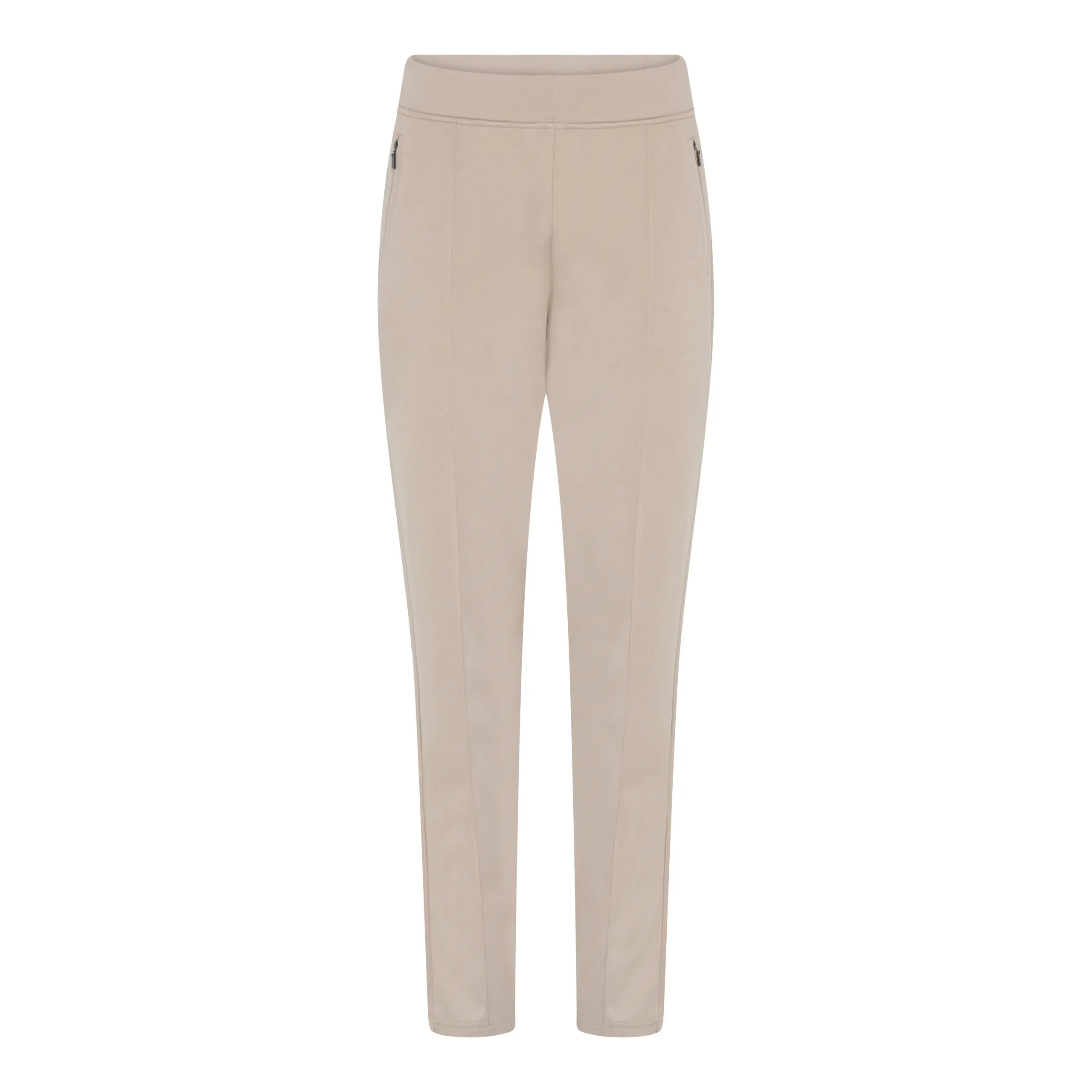 Härlig mörkbeige trikåbyxa med stretch och avsmalnande ben.