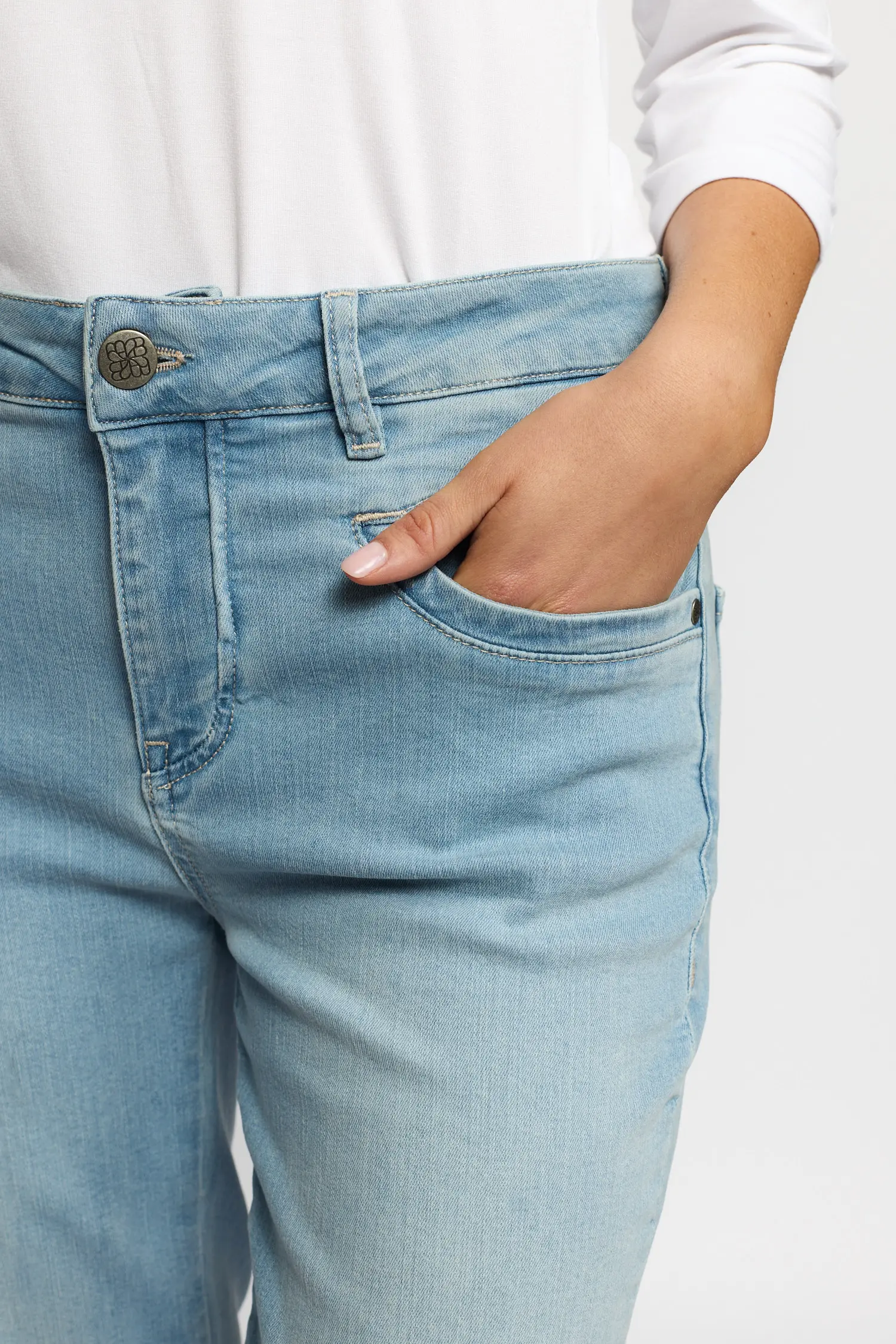 Jeans i rak modell och något högre midja från 2-biz. Härligt strechig kvalitet.Finns i ljusblå och mörkblå denim.