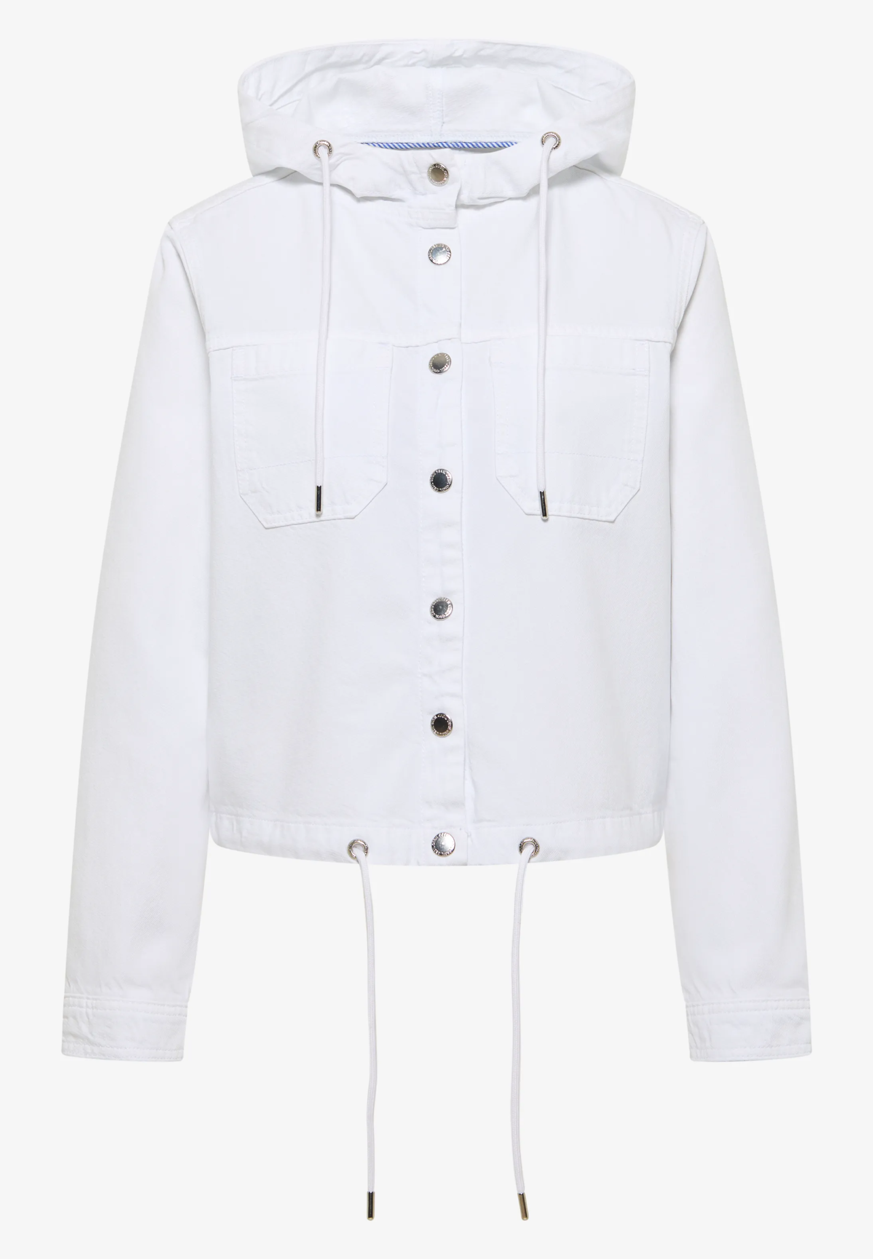 Tuff jeansjacka med fast huva från Cecil. Två bröstfickor. Dragsko i huvan och nedtill. Stänges med knappar. Rak något kortare modell.