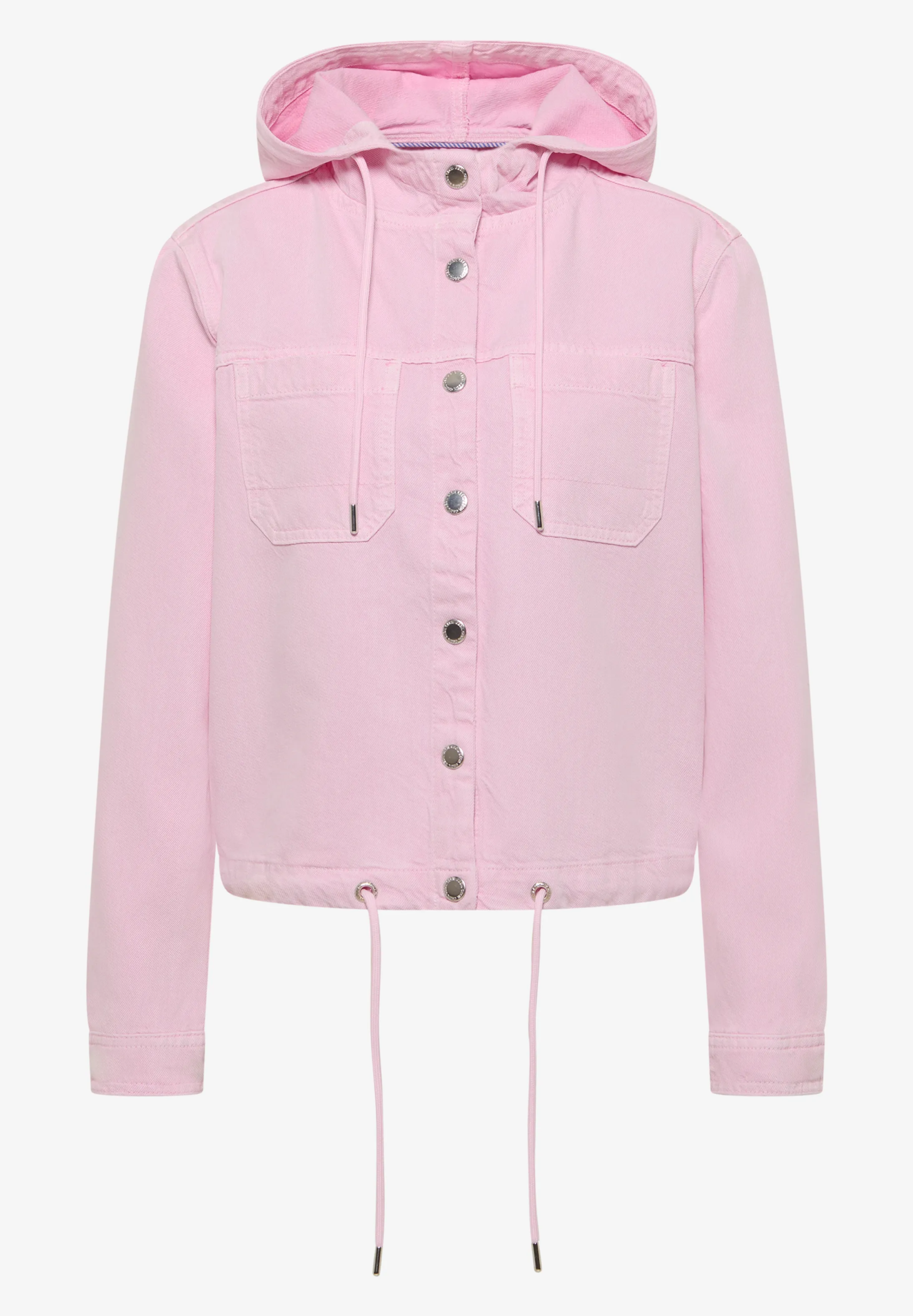 Cre Tuff jeansjacka med fast huva från Cecil. Två bröstfickor. Dragsko i huvan och nedtill. Stänges med knappar. Rak något kortare modell.