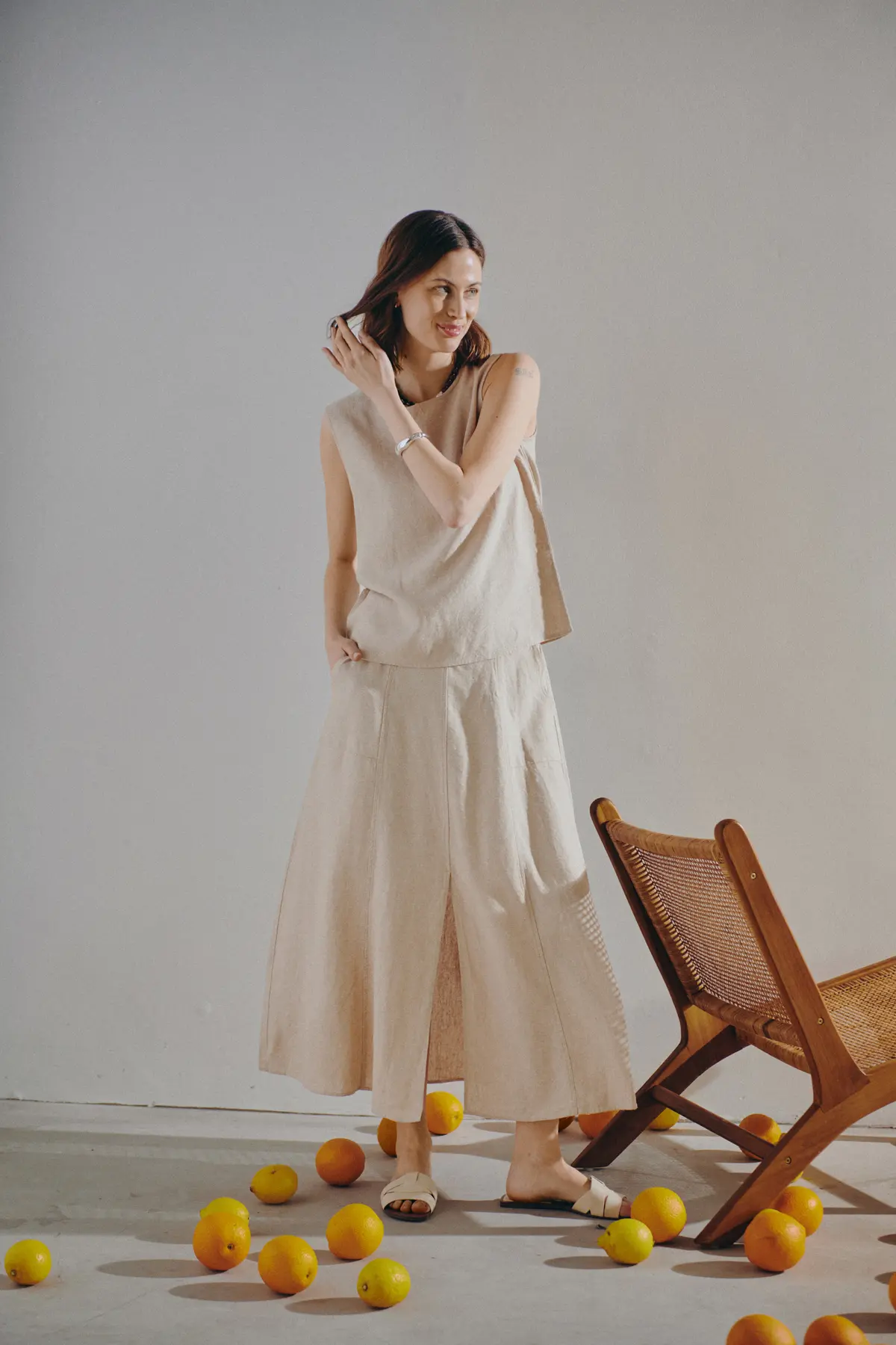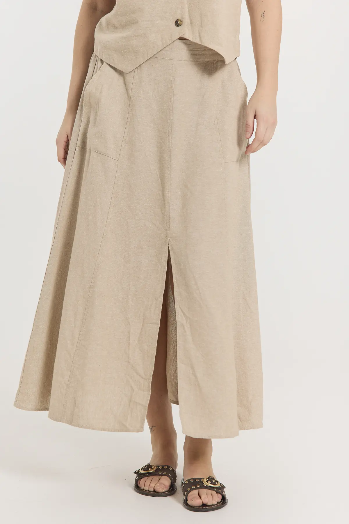 Kjolen har en härlig viskos/lin blandning vilket gör den bekväm för varmare väder.