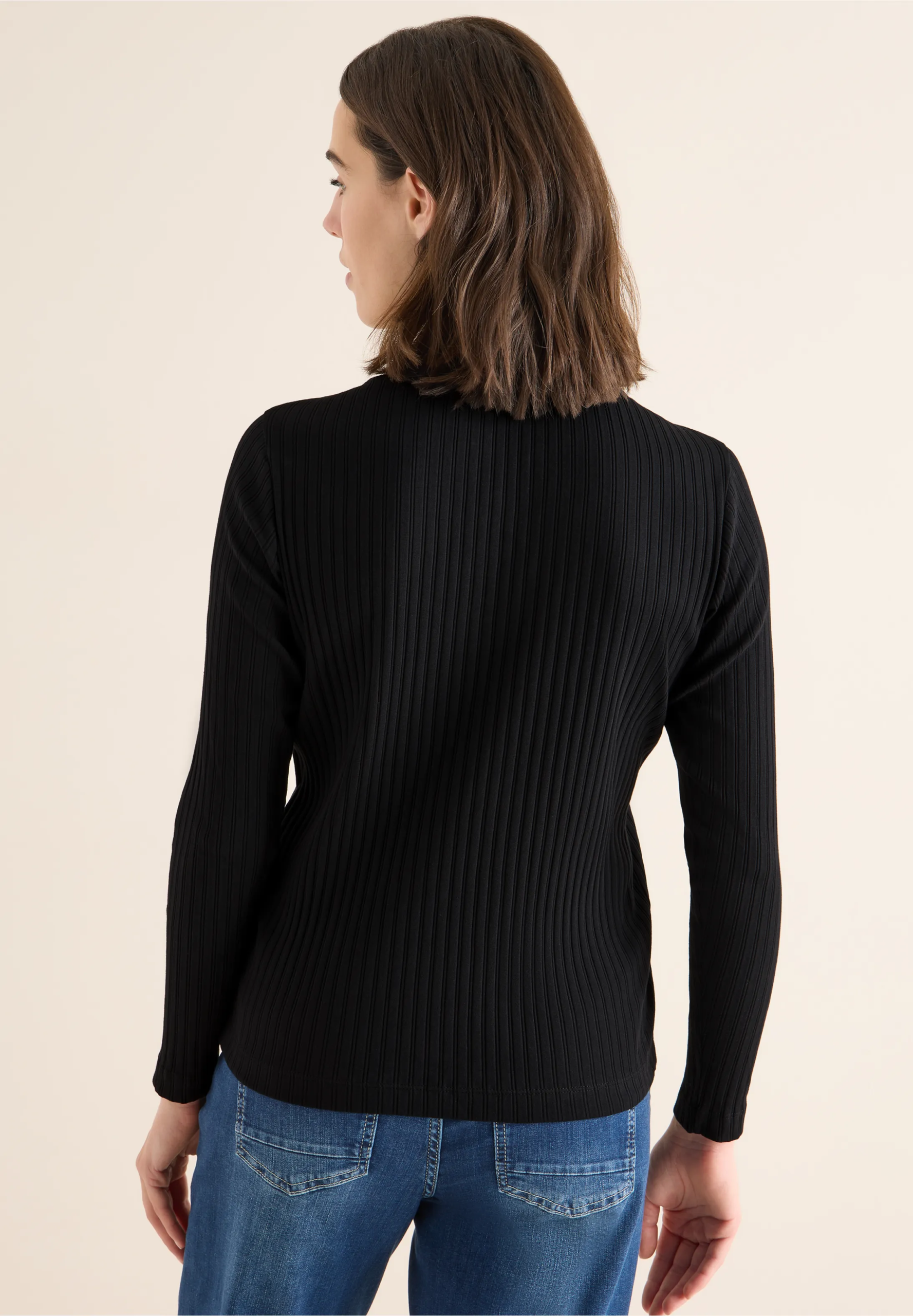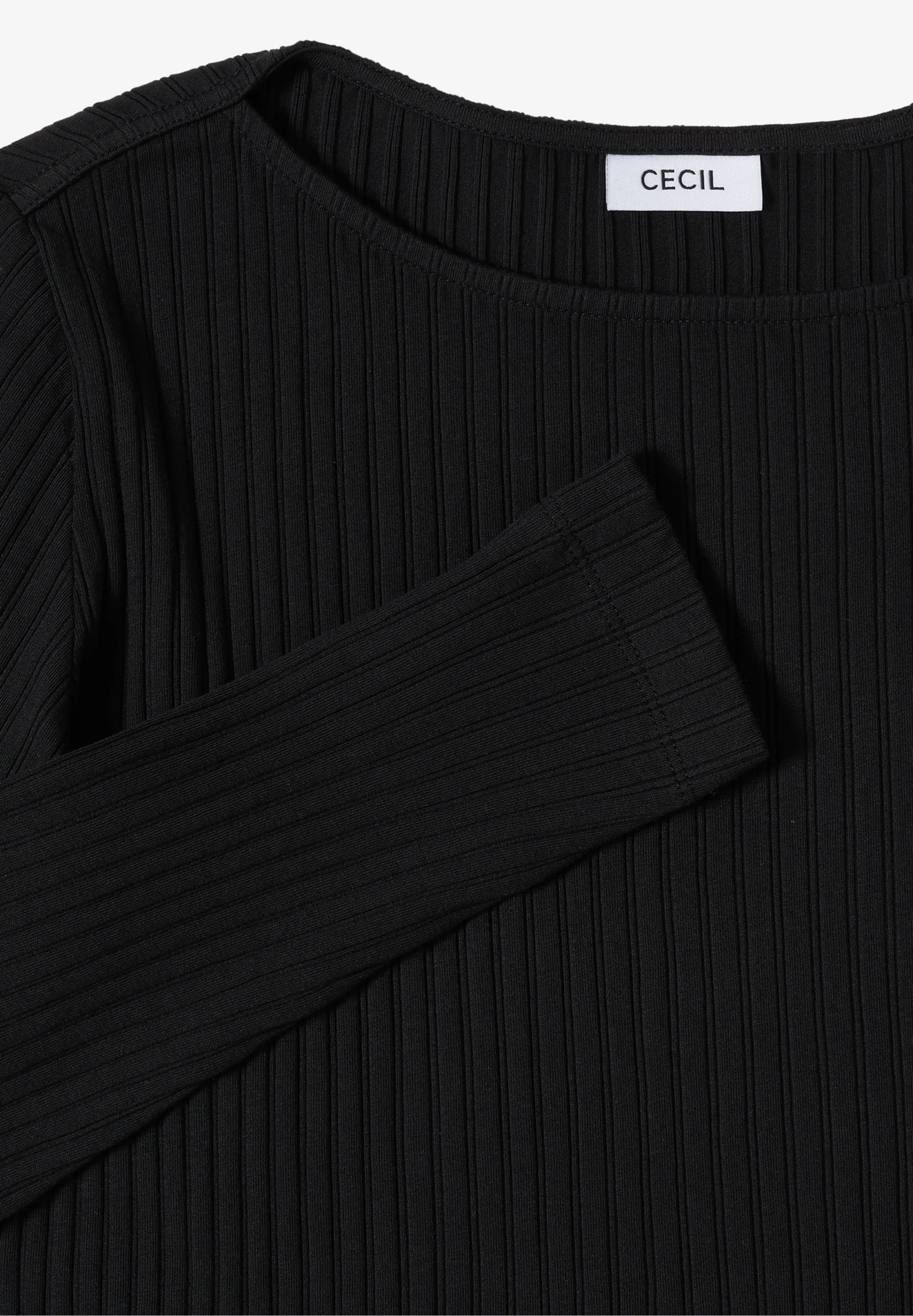 Långärmad ribbad top med båtringning från Cecil. Perfekt att sätta under höstens alla västar och koftor.