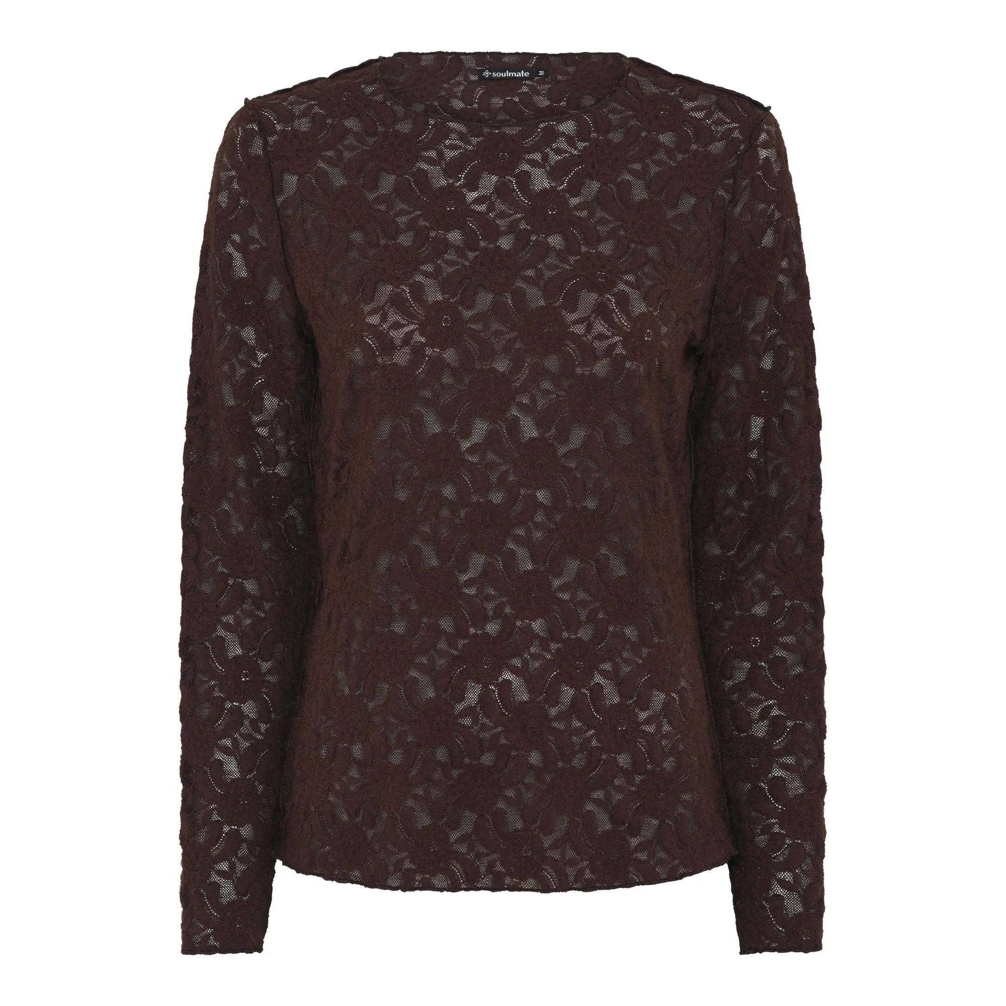 Snygg spetstopp i burgundy från Soulmate. Toppen har rund hals och lång ärm.