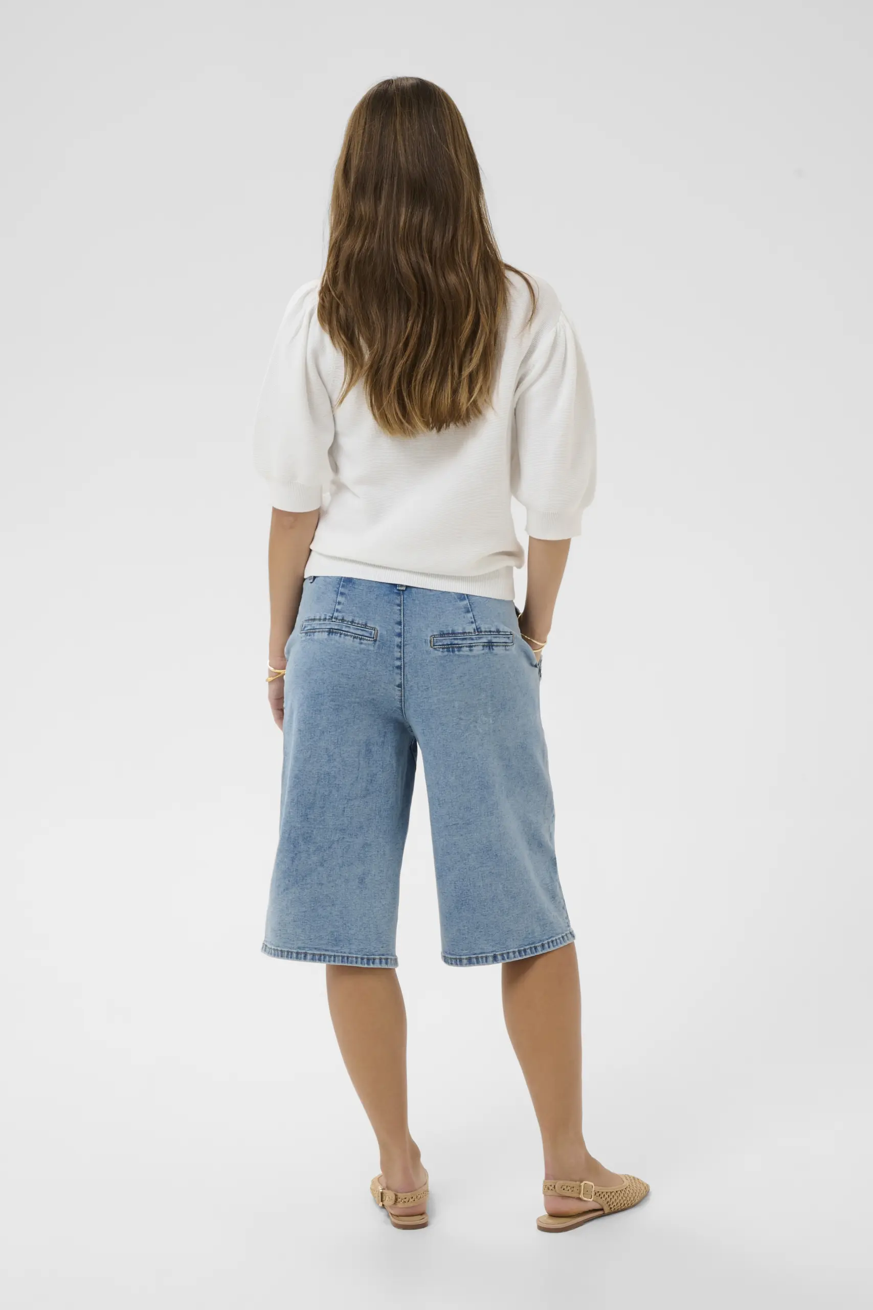 Stickad bomullsjumper med 3/4 lång ärm och söt puff på axeln.