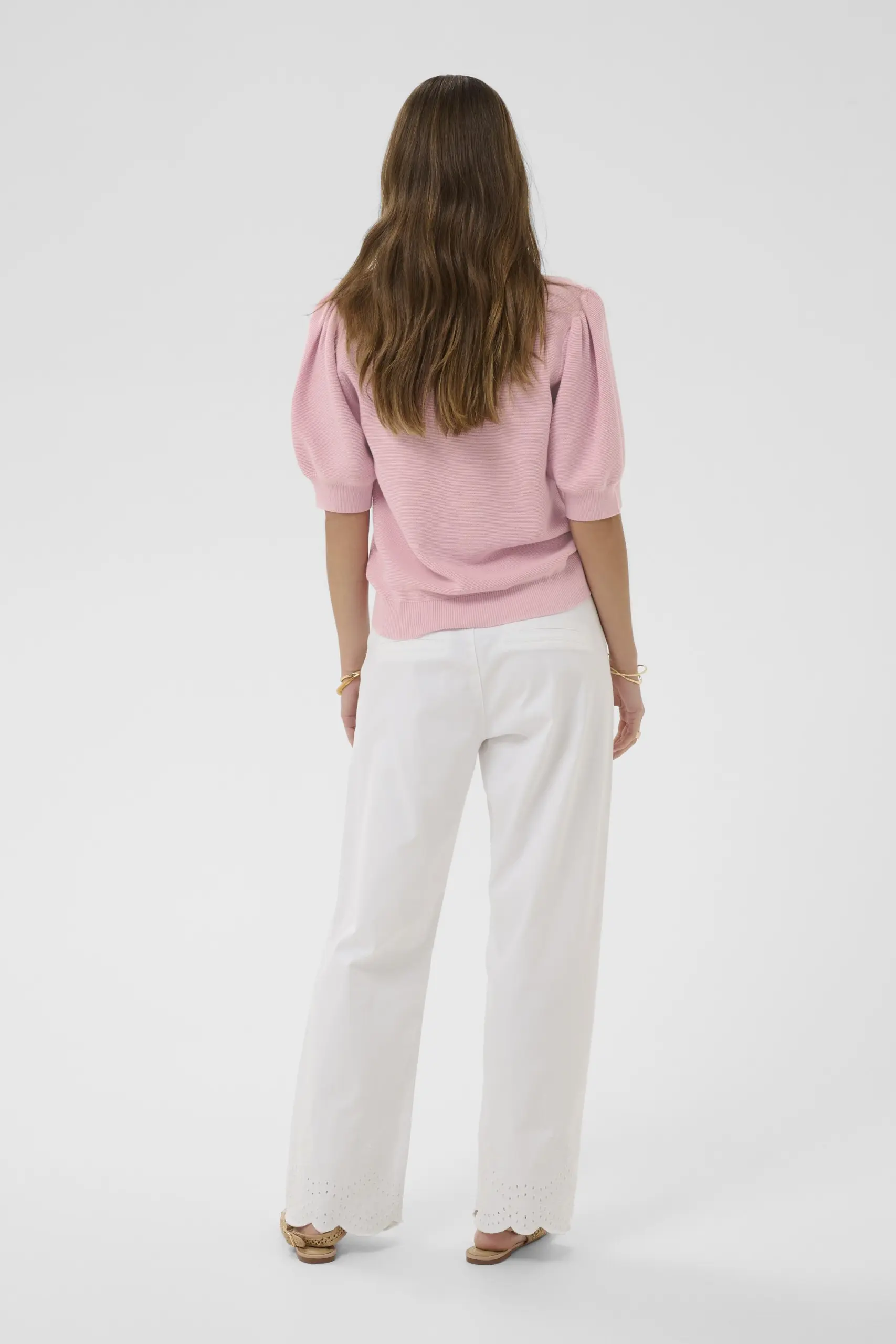 Stickad bomullsjumper med 3/4 lång ärm och söt puff på axeln.