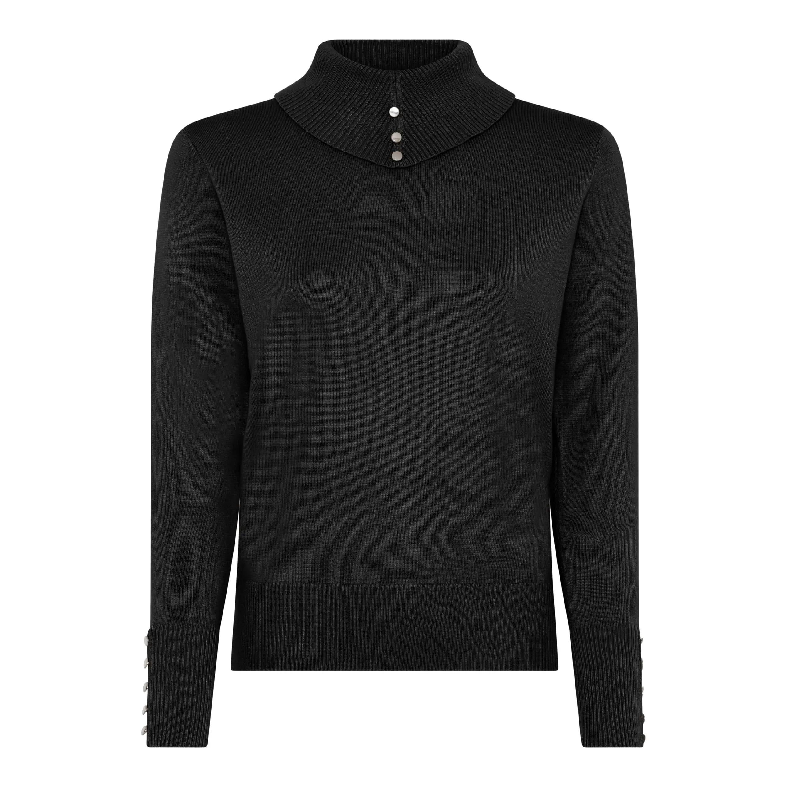 Fint dekorerad med knappar fram på polokragen och vid ärmsluten. Liten muddkant nedtill samt vid ärmsluten.