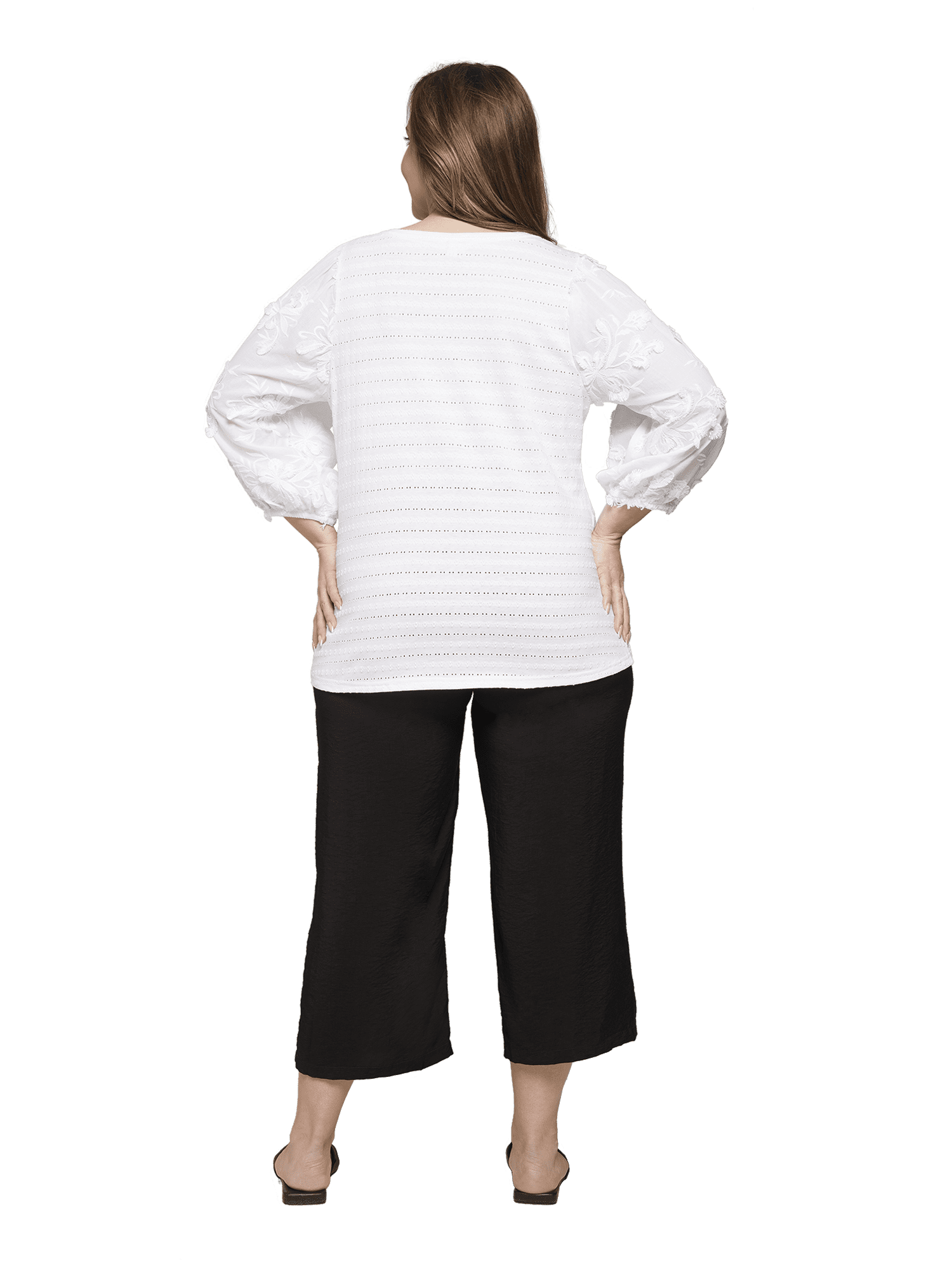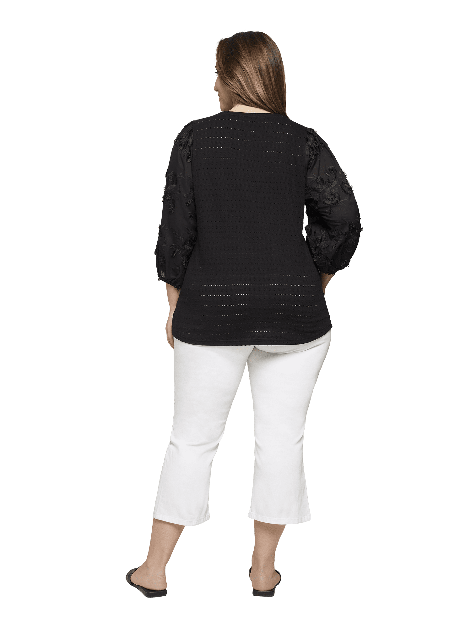 V-ringad top från Ciso med fina blomapplikationer på ärmen.