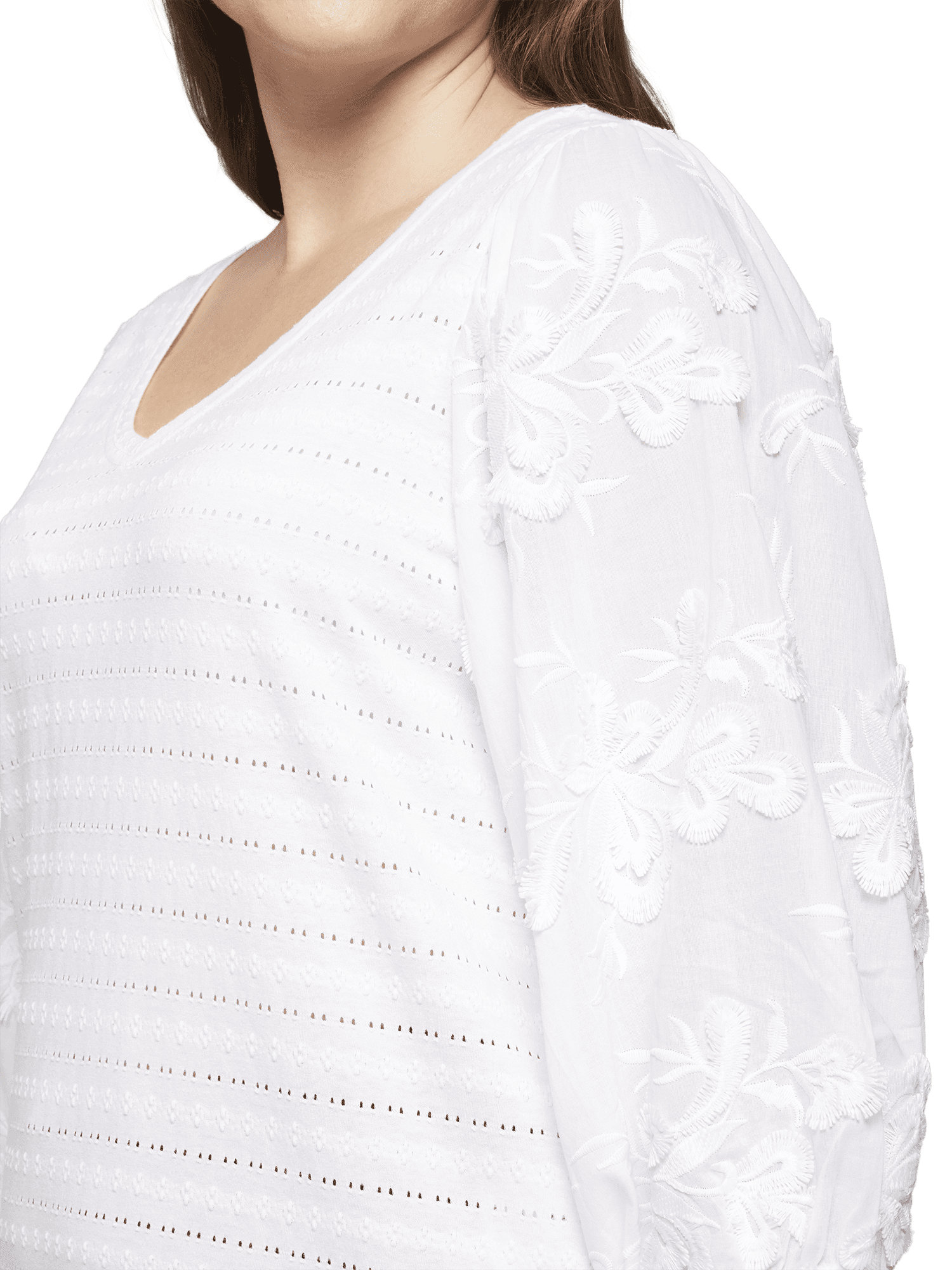 V- ringad top i bomull med fina blomapplikationer på ärmen.